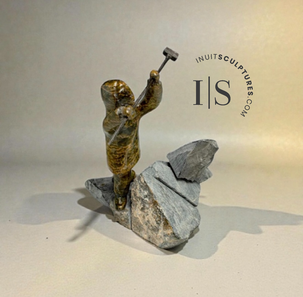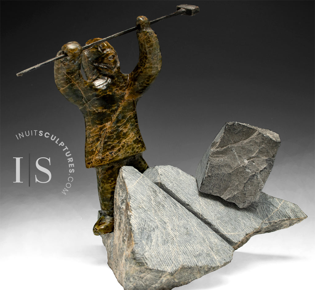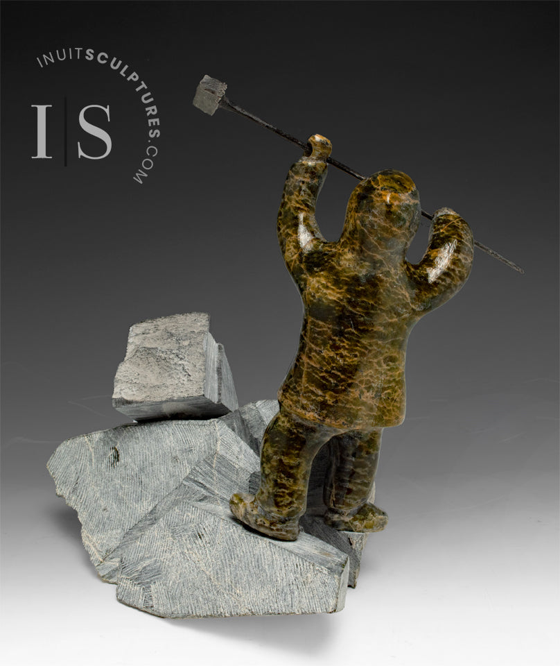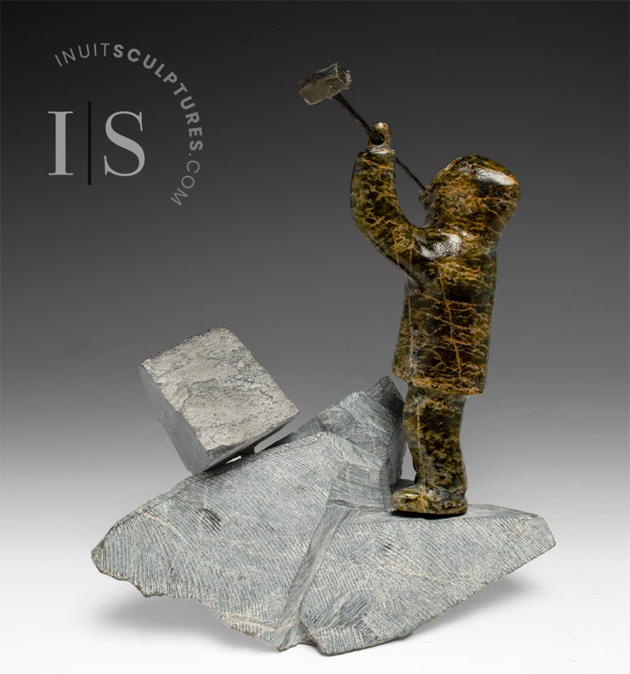 The reality is that the Inuit carvers must travel long miles often under dangerous conditions to saw or chip stone from open quarries.