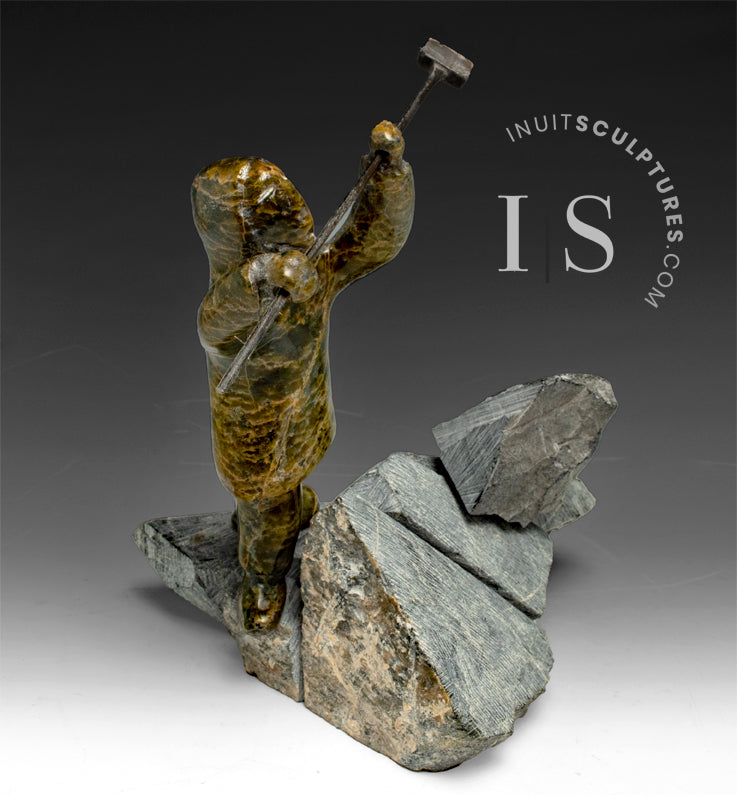 VINTAGE 7" Eskimo Carver at the Quarry by Late Kellipalik Qimirpik *Love of the Art*