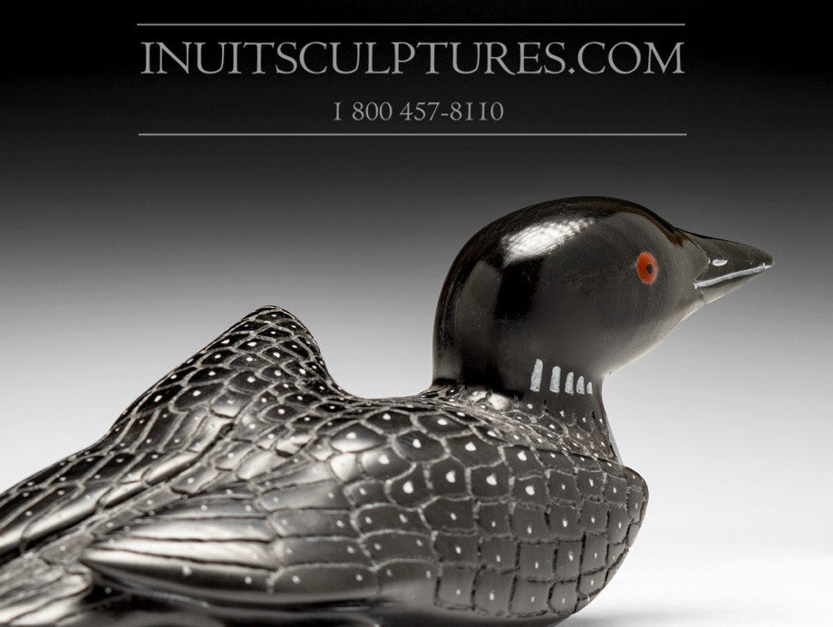 It is difficult not to be aroused by the sheer beauty of this sculpture. Not only is this loon carved with extraordinary skill and sensitivity, but Jimmy Iqaluq - the master carver who created this work - has manifested this masterpiece into a high degree of naturalism. He gave this stone a breath of life. This piece is truly a labour of love.