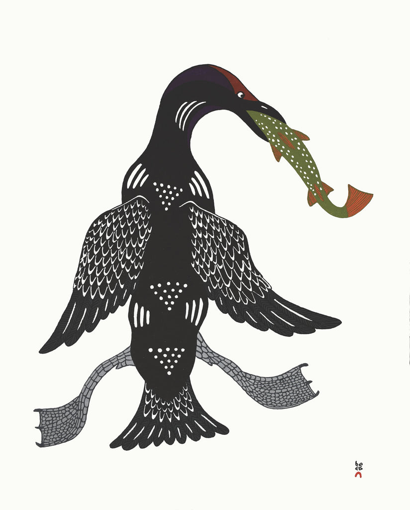QUVIANAQTUK PUDLATTriumphant LoonStonecutPaper: Kizuki Kozo WhitePrinter: Qavavau Manumie76.5 x 62 cm