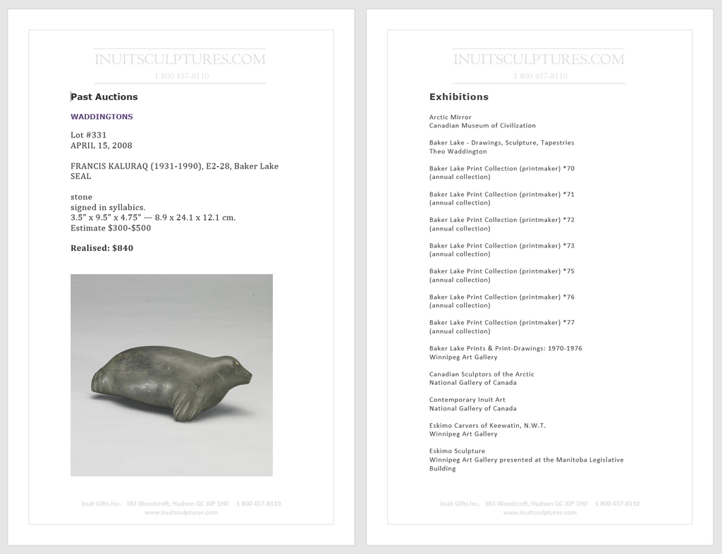 Appraisals provide financial and historical assessments of Quality Inuit Fine Art.