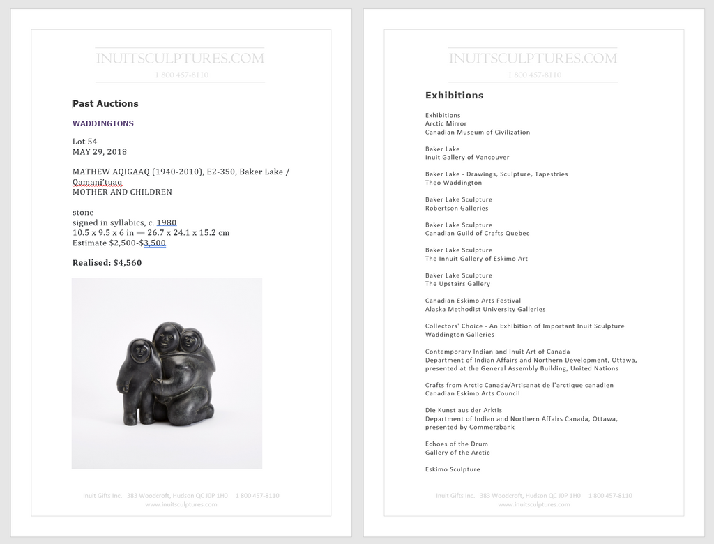 Inuit Sculptures is relied upon for our expertise and ethical standards in this appraisal process.