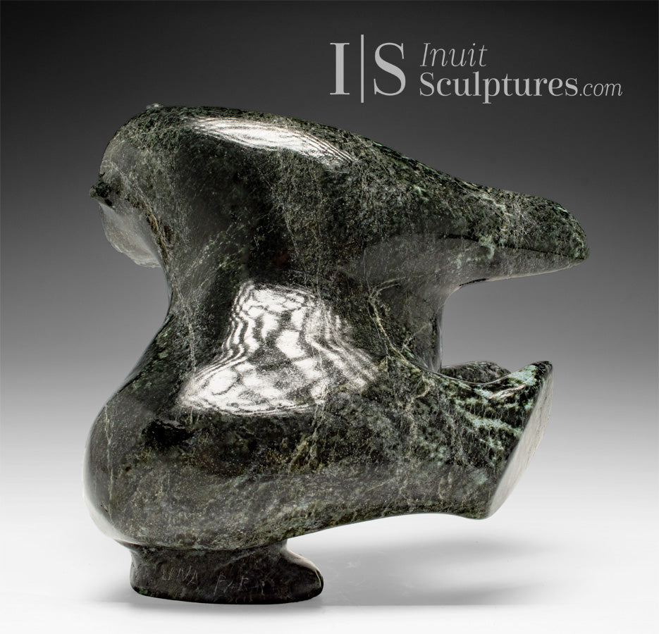 I don't recall ever seeing this deep black/turquoise colour in an Inuit sculpture.