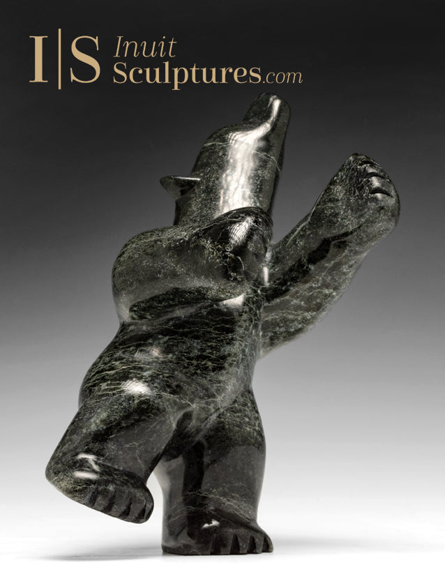 His opulent dark green colour is the classic look for a traditional Dancing bear from Cape Dorset.
