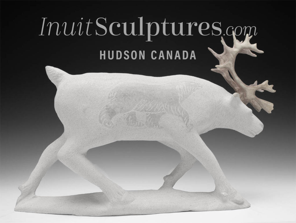 Esau's SIGNATURE is the exquisite embroidery (etchings) of Arctic mammals and birds on his sculptures.