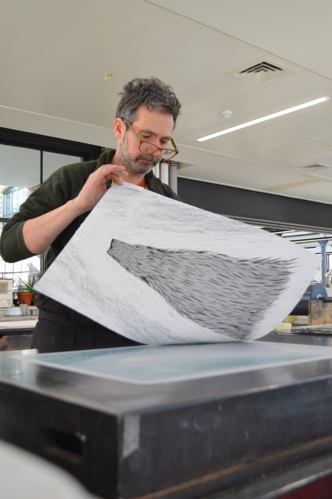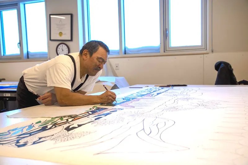 Based in Kinngait, Nunavut, Quvianaqtuk Pudlat worked with Alastair Clark, Head of Editions of Edinburgh Printmakers to produce a printed lithograph  be sold in Scotland and Canada.