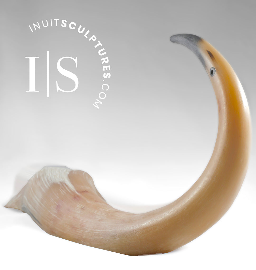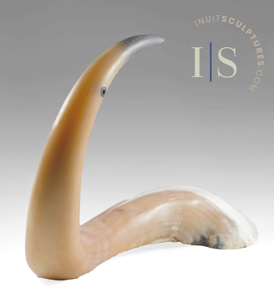 Ookpik has used the entire half of a muskox headpiece (one of the horns) to sculpt this serene and graceful crane.