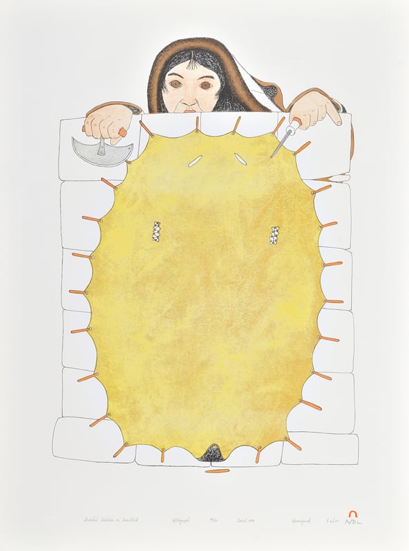1994 STRETCHED SEALSKIN ON SNOWBLOCK by Kananginak Pootoogook