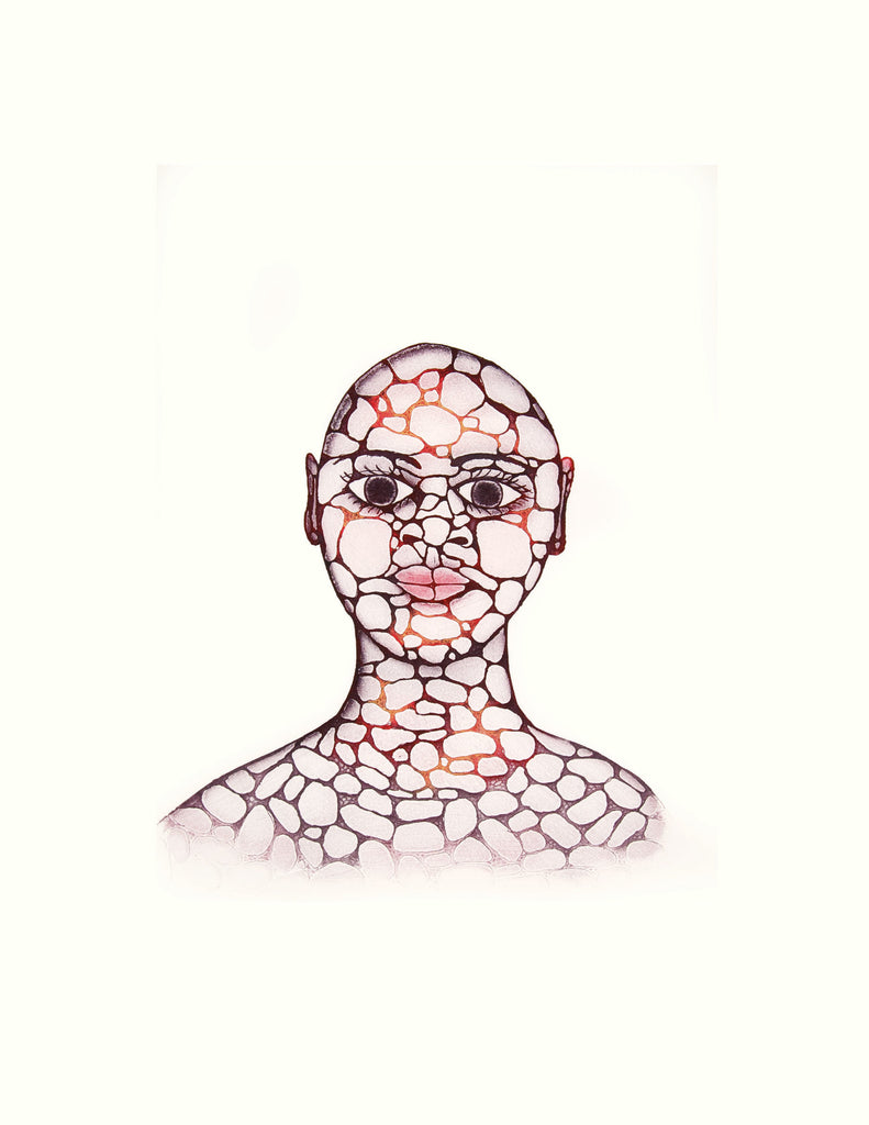 PADLOO SAMAYUALIEPebble WomanEtching & AquatintPaper: Arches WhitePrinter: Studio PM60 x 47.5 cmReleased in the 2018 Cape Dorset Print collection