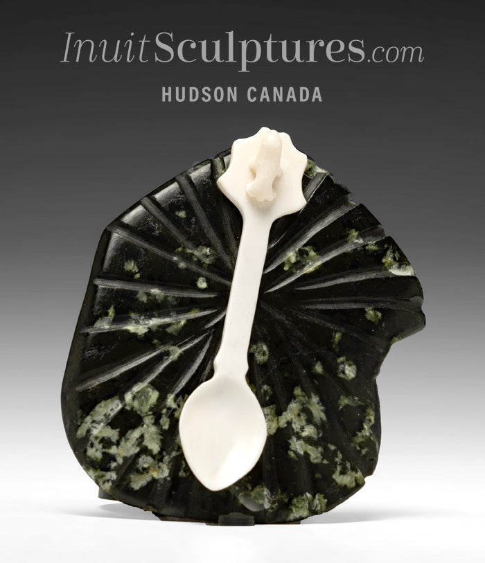 Inuit art: Tiny seal sitting on an Ivory Spoon