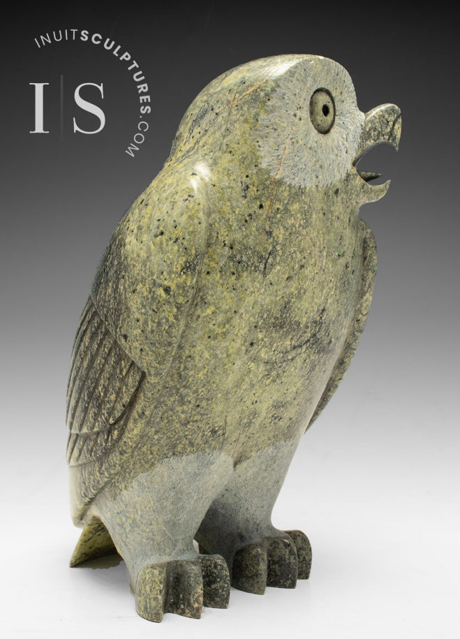 THIS SIGNATURE OWL BY PITS QIMIRPIK IS ONE OF THE REMAINING OWLS FROM OUR PERMANENT COLLECTION.