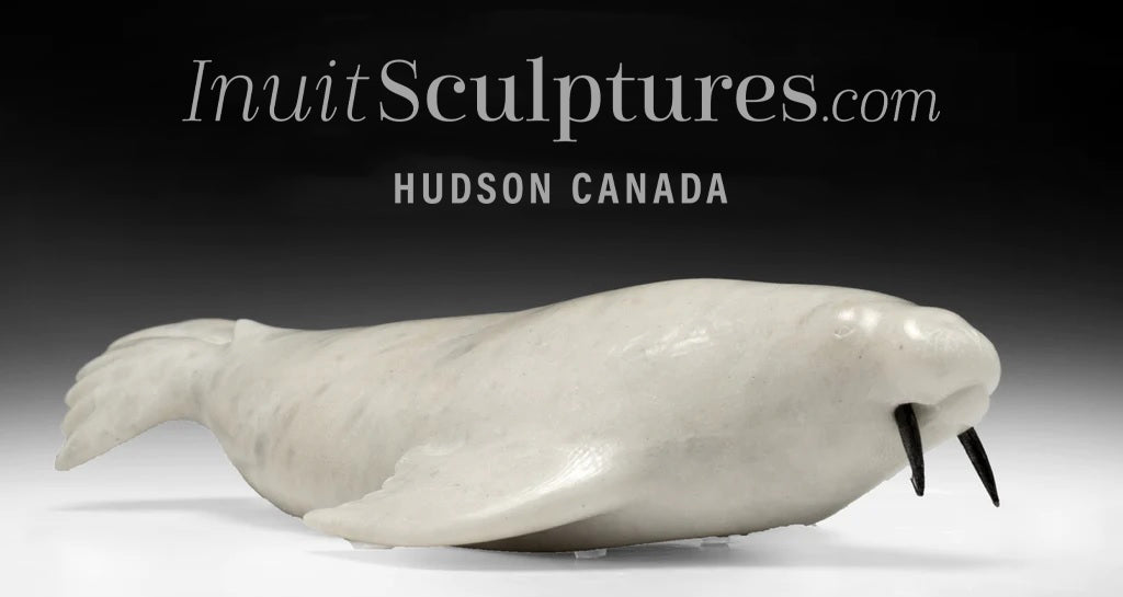 The finish on this spectacular walrus carving is like starlight reflecting off the snow.