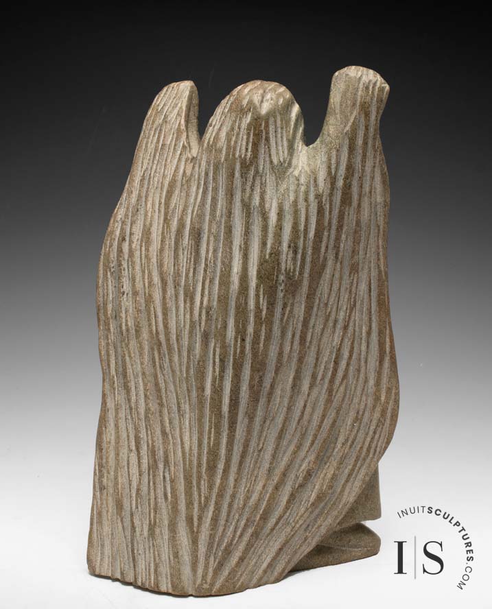 Her gown is beautifully draped, Omalluq has lovingly and meticulously carved the folds in her dress and her cloak or "wings".