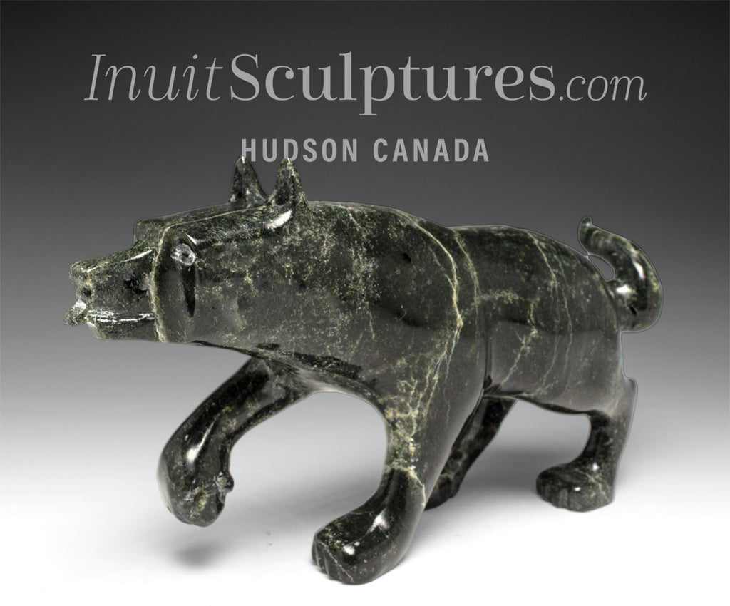 Inuit Art: DogInuit Artist: Kelly EtidloieSize: 10" across (tail to head), 5.5" high, 3" deepCommunity: Cape Dorset, NU 7/25Stone: Serpentine id: dfa-6460SaejjyNOTE** Inuit Art is Handcrafted in Canada. It ships TARIFF-FREE to the USA.