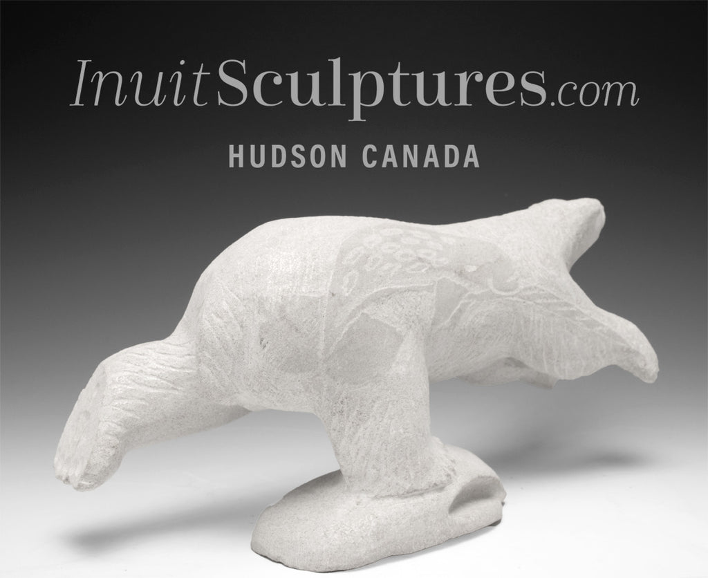 Strong and Athletic, Radiate bears several carved motifs or embroideries of etchings of Arctic animals and birds.