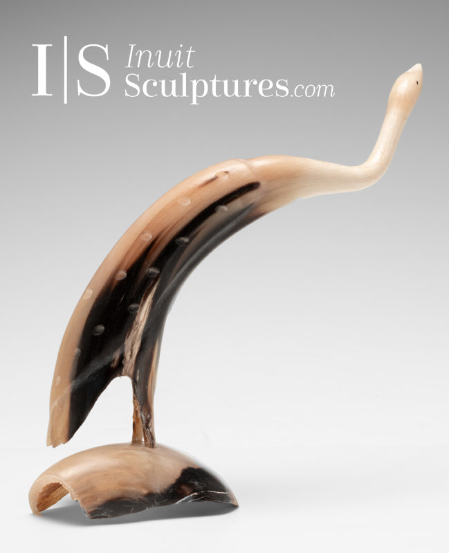 Buddy has summoned all his extraordinary skill and imagination to carve a muskox horn into this heart rendering love bird..