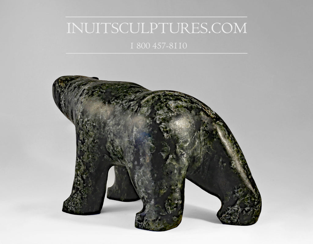 This is a beautiful rendition of a walking bear by Louis Uttaq. The rawness and rudimentary angles make this a timeless piece out of Gjoa Haven, NU.