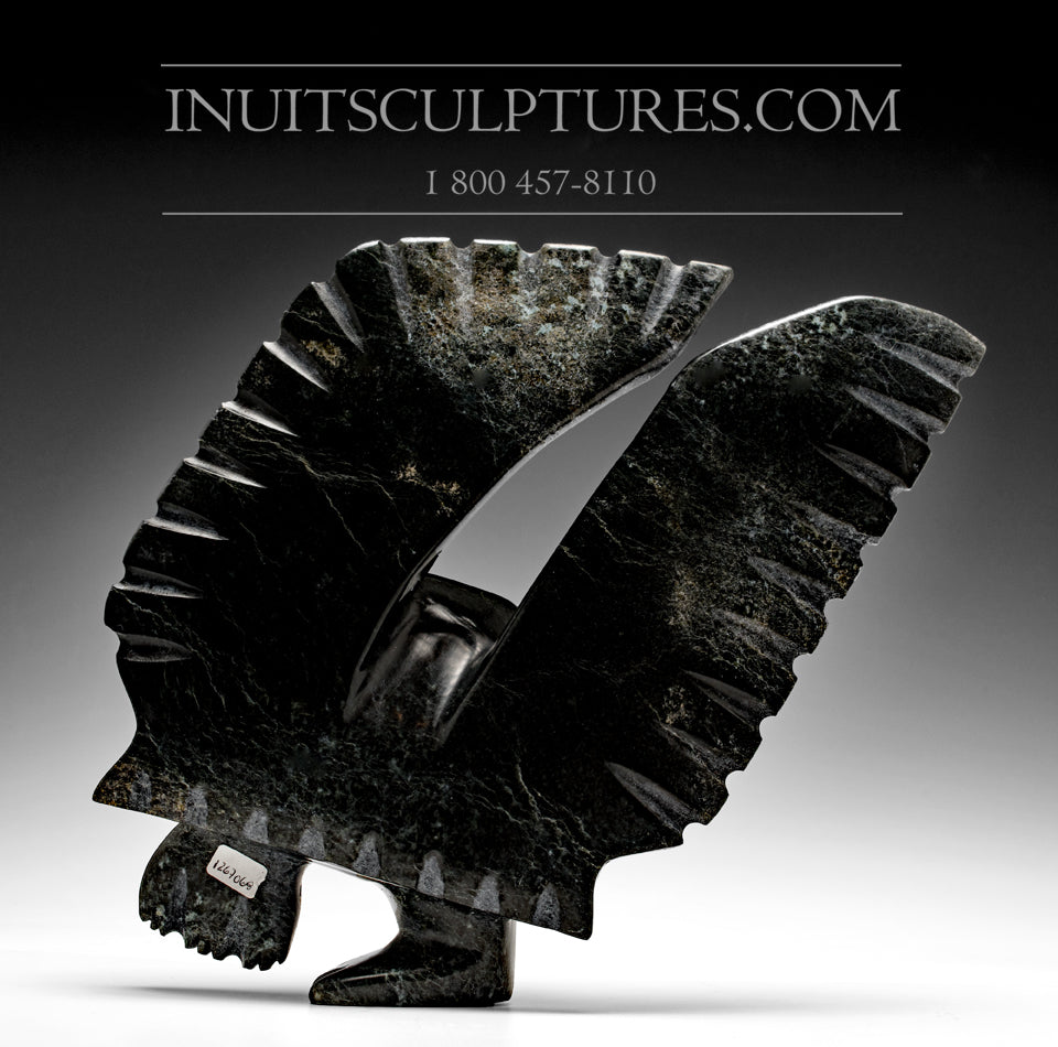 The refinement and polish are also beautifully composed. The size of this carving is quite large and can easily be a centrepiece for any home. Qiatsuq's owls are in extremely strong demand, I had to wait for quite some time before obtaining this one.