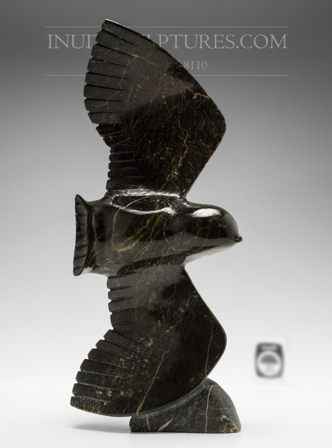 This is a stunning black Falcon carved by Inuit artist Luca Mikkigak (from Cape Dorset, Nunavut).