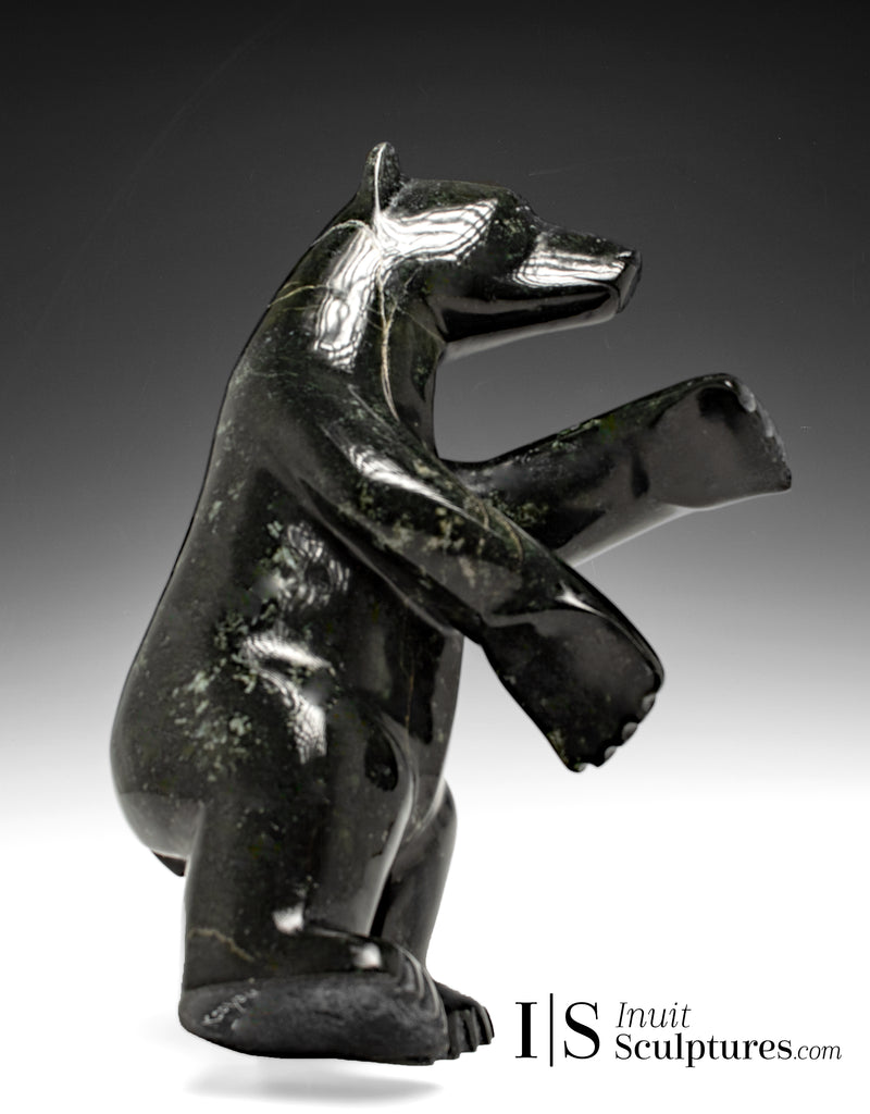 This stunning piece is another of Peter's two way dancing bears. This means the bear can balance on either of its back feet. The artist who can carve a two way bear requires patience and talent because it is very difficult to achieve this posture. Kooyoo Peter is one of the artists today that has this ability.