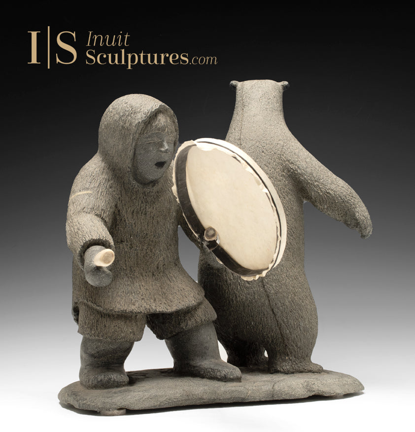 13" Drum Dancer and Bear by Lazarus Malliki *Dance Partners*