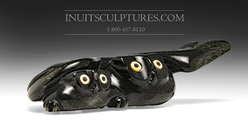 This is a gorgeous and classic snowy owl by world renown Joanasie Manning. He is internationally famous for his owls like these ones (mother owl with a chick).