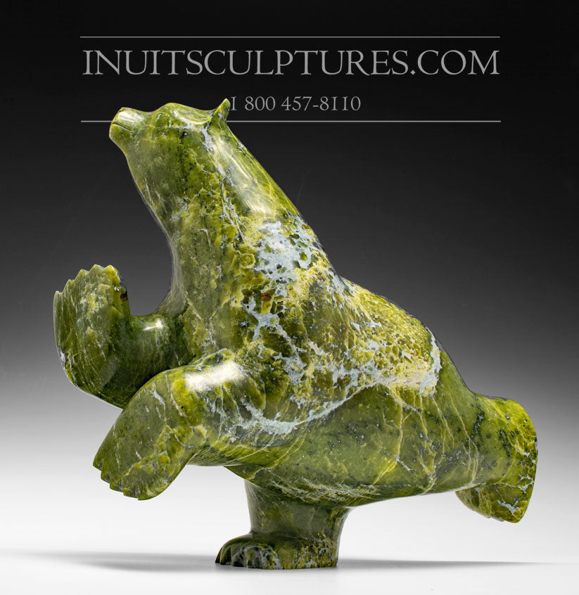 Ashevak Adla is the absolute best Inuit artist today carving large scale bears. His pieces are all done to absolute perfection as is the case with this one. Enjoy!