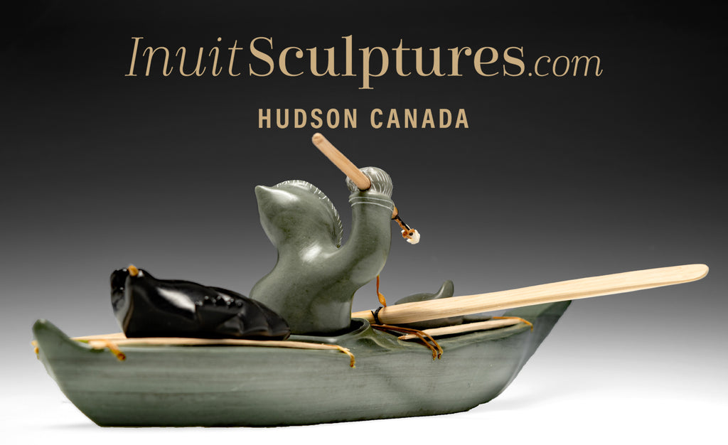 This Kayak Inuit carving is a centerpiece for any Inuit art collection. You must have at least one Jimmy Iqaluq scene in your collection.