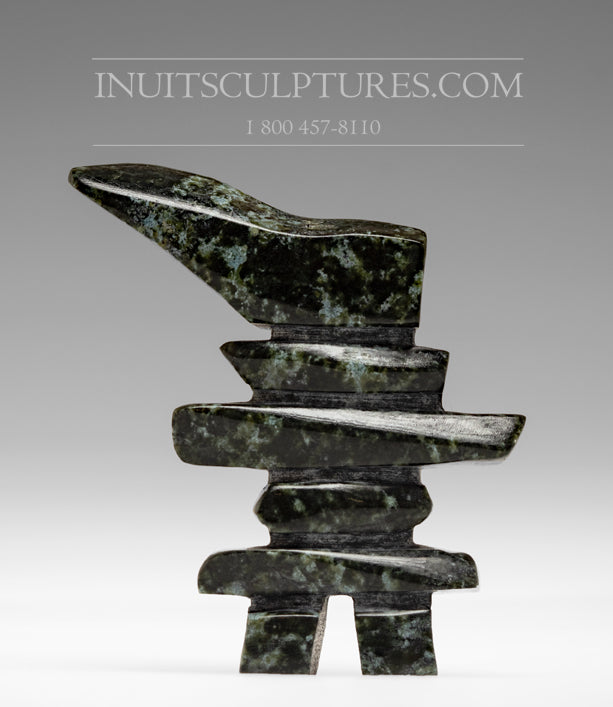 This is a gorgeous balanced Inukshuk done in a striking serpentine stone from Cape Dorset.