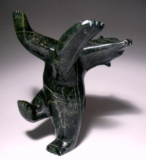 This is a spectacular dancing bear by the acclaimed Inuit artist Noo Atsiaq. This masterpiece was acquired directly from his hands in Cape Dorset (arctic Canada). This stunning Inuit carving comes with an Igloo Tag (Certified of Authenticity).
