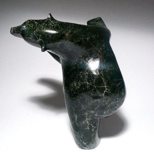 Noo Atsiaq was born in Iqaluit (Frobisher Bay), Nunavut and now lives and carves in Cape Dorset, the capital of Inuit art. His Parents are Alashua Atsiaq and Piulia Pudlalik Atsiaq. Noo has been carving since he was a young kid. He was initially taught by watching other carvers. His favorite subject is bears, dancing, diving and walking. Sculptures by Noo Atsiaq are well known and thought after in the Inuit art collectors world. He also occasionally carves people and caribou.
