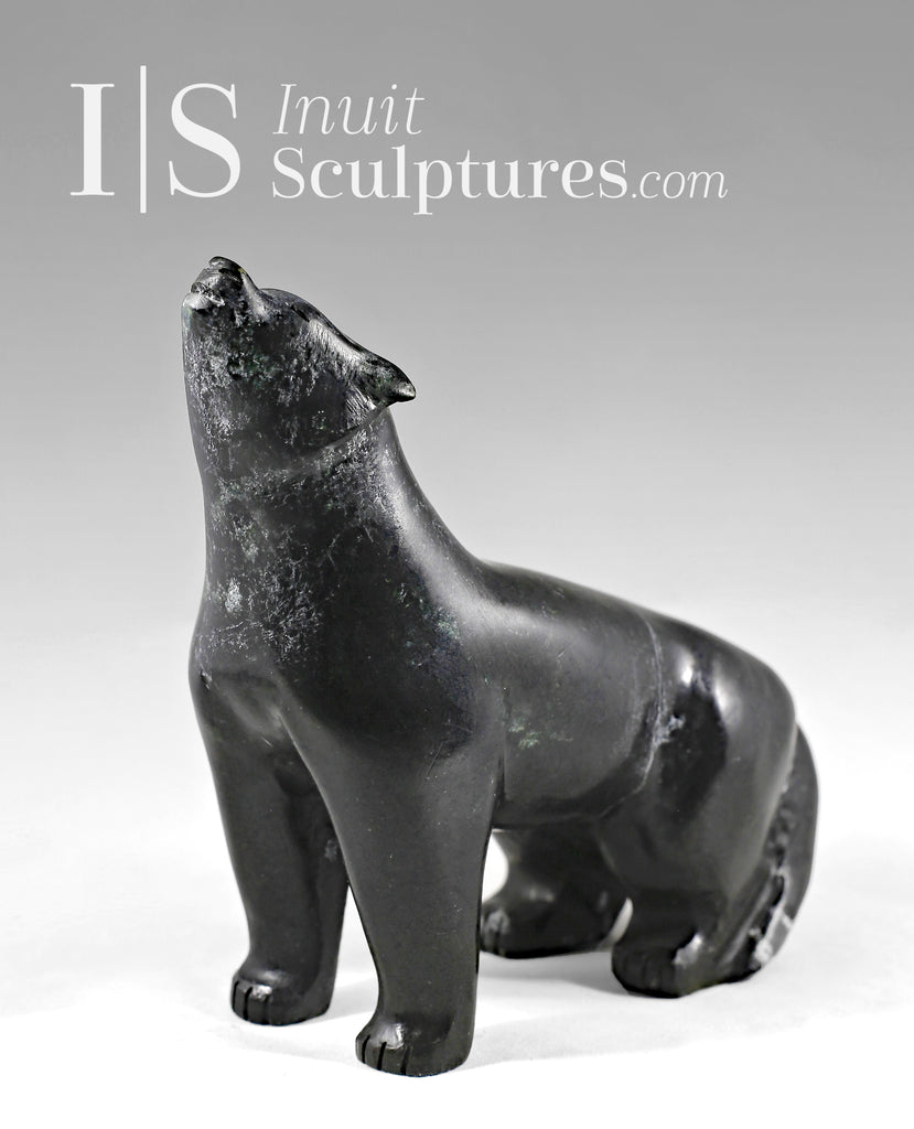 Beautiful howling and beautiful carving... the black argillite stone, the carved fur and the stance of this Arctic wolf creates a captivating sculpture.