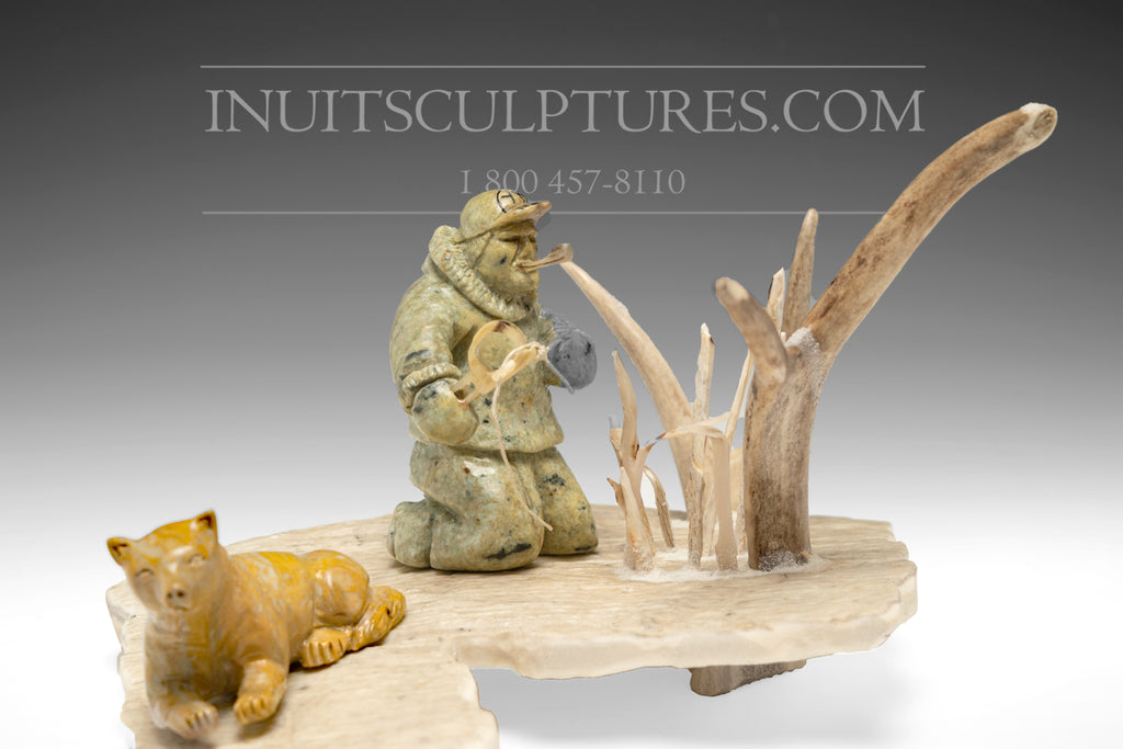 Peter K's perfectly executed scenes depicting Inuit life, take your breath away. There are so many meticulously and lovingly carved components to this scenario, that it takes some time to appreciate all the details and the complexity of this sculpture.