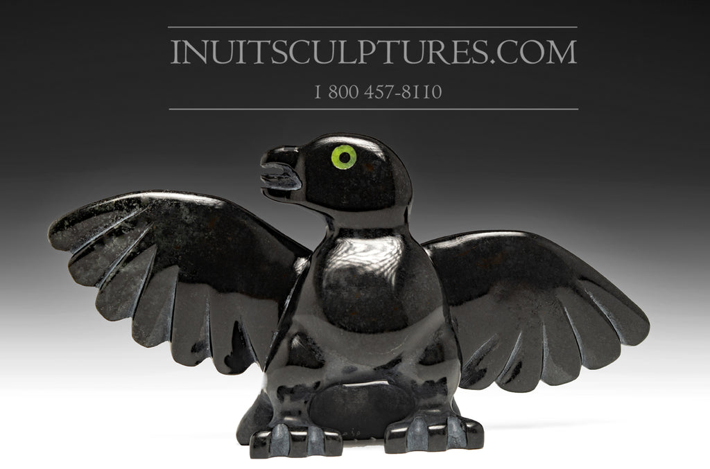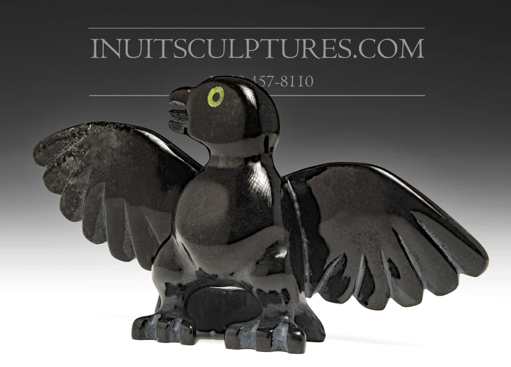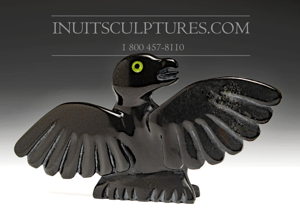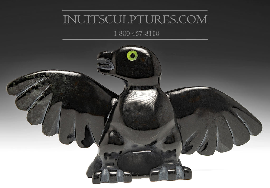 "Toonoo's parents, Josephee Sharky and Ragee Killiktee, were both carvers, though he credits his grandfather, master carver Kuppapik Ragee and his uncle Shorty Killiktee as influences. Toonoo started carving at ten, began to get serious at thirteen and first exhibited when he was just 17. He is regarded as one of the most exciting young carvers to emerge in the Arctic. His themes include fanciful and quite dramatic treatment of wildlife, particularly birds, and transformational works that are both powerful and humorous. His work is widely shown, and he was elected to the Royal Canadian Academy in 2003." *