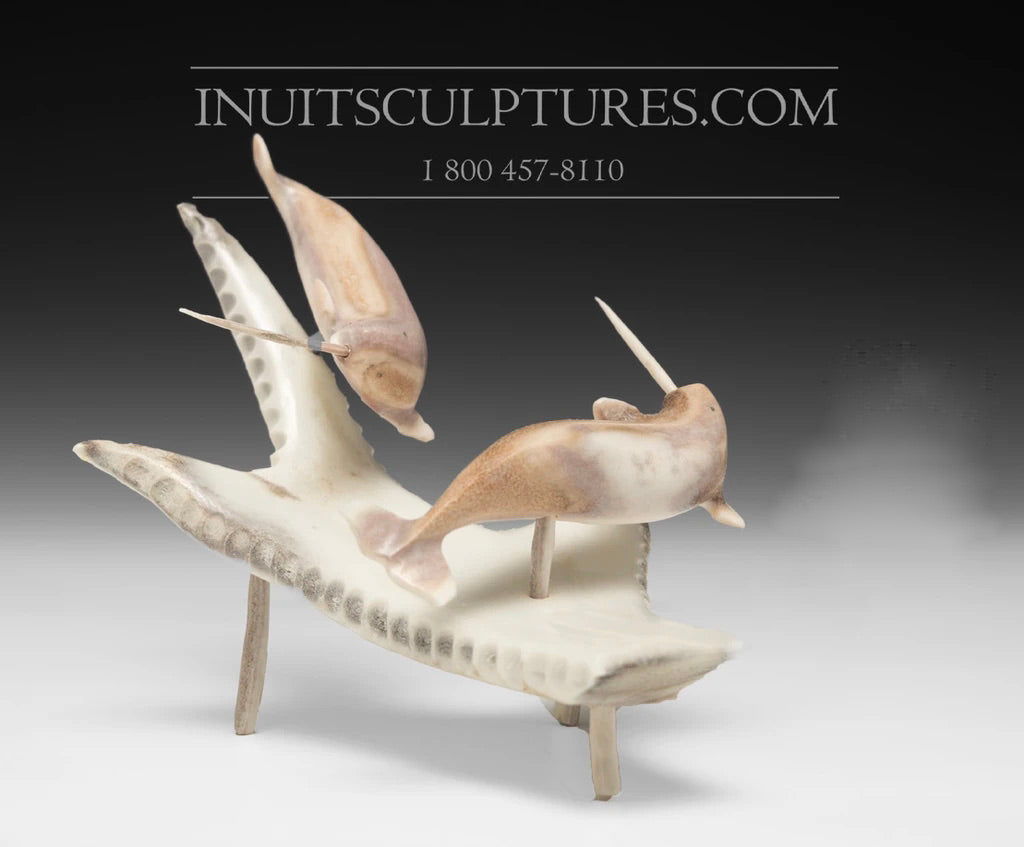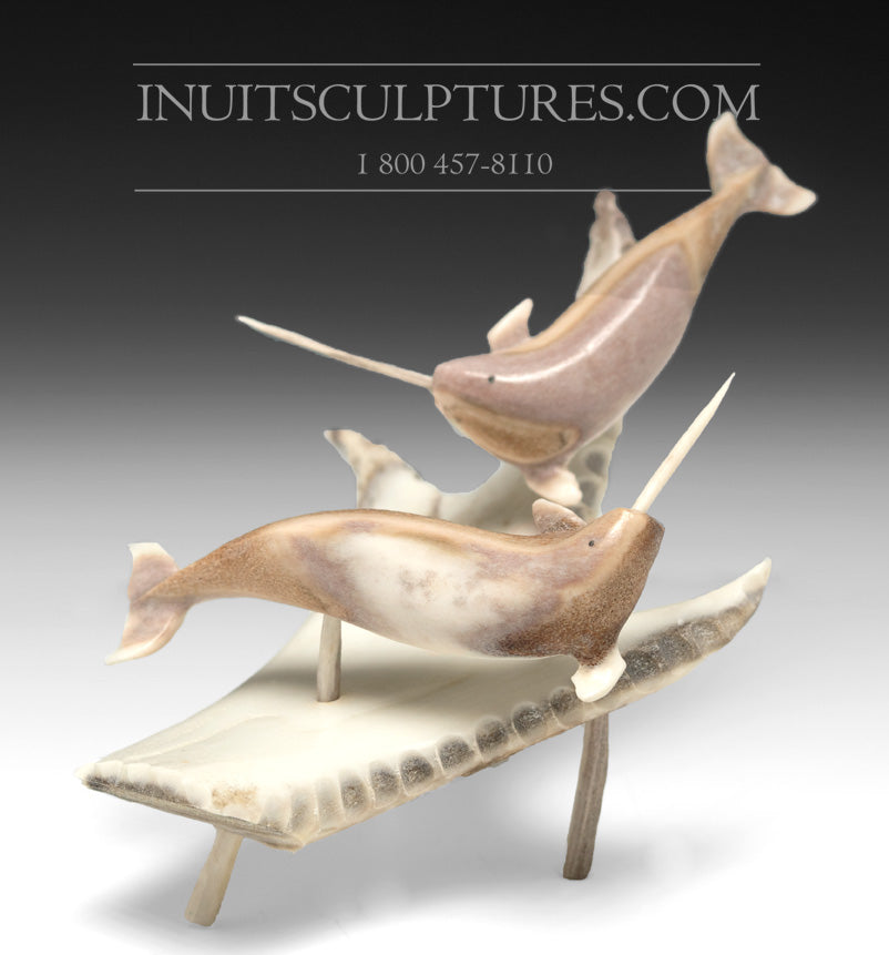NOTE** In my 12 years of being an Inuit art Curator, I have never seen a scene like this; two narwhals, circling each other in preparation for battle!