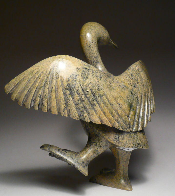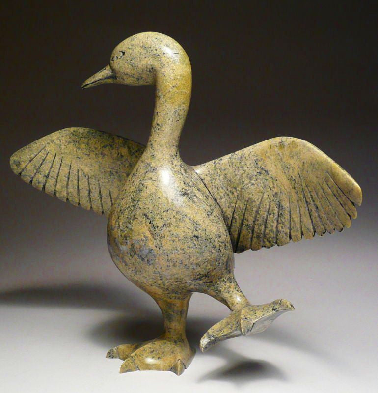 Pudlalik Shaa is probably my favorite artist. He makes beautiful masterpiece birds that are perfect in every aspect. His dancing gooses are his signature theme. The proportions to his pieces are always perfect and well balanced. What I especially admire about his pieces are the stylized curvatures and colors he uses. The heads of his birds are very beautiful.