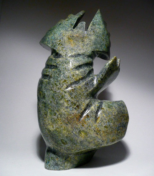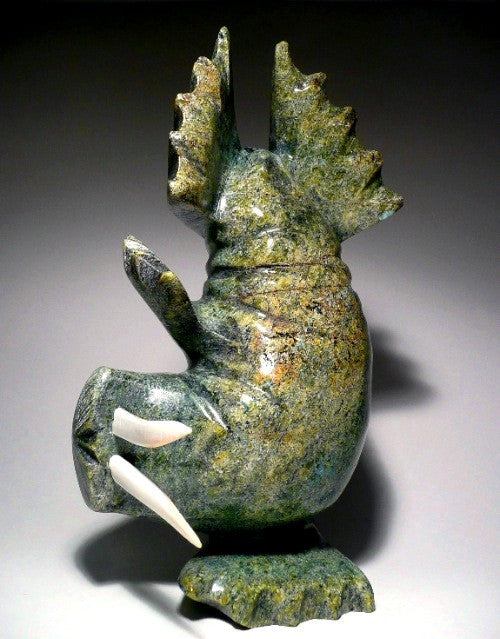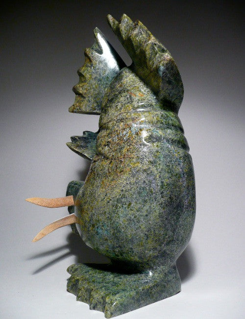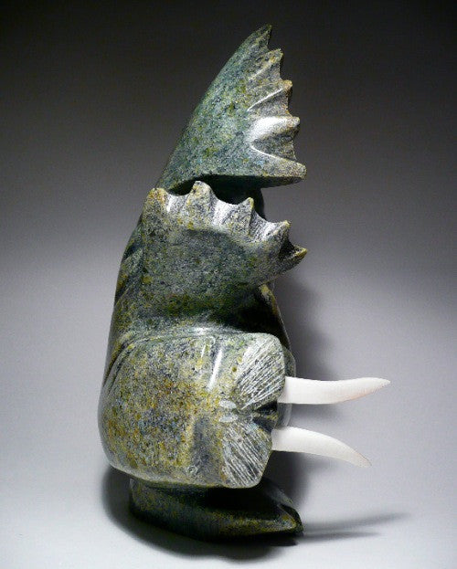 This is a really beautiful carving, and will be a center piece of your living room or office. There is much movement in this dancing walrus. The colors are traditional green.