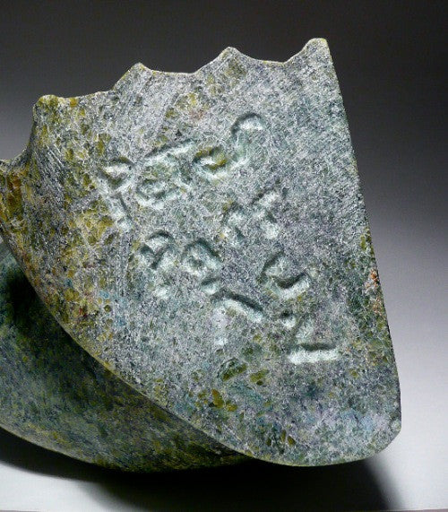 The sculpture is made out of serpentine, gorgeous green. The carving is completely perfect.
