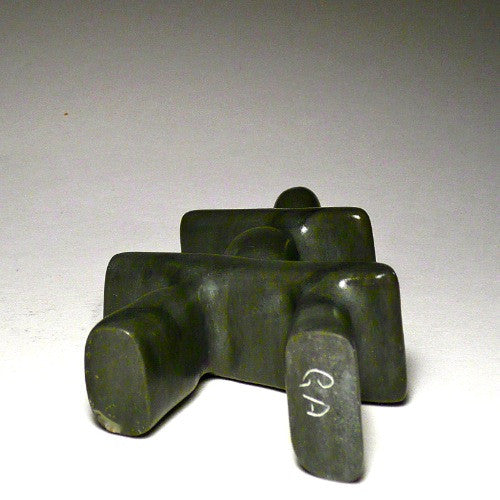 This is a beautiful deep green argillite based Inukshuk made from Sanikiluaq. The beautiful finish of this Inukshuk really captures the essence of Sanikiluaq stone with its beautiful waved grains riding against the surface.