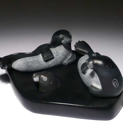 This is an exquisite set of seals carved by Inuit artist Josie Iqaluq from Sanikiluaq, Nunavut.